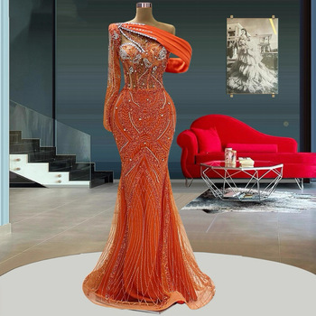 사용자 정의 오렌지 럭셔리 진주 페르시 웨딩 원피스 신부 가운 저녁 무도회 원피스 Vestidos 드 노비아 이슬람 저녁 원피스