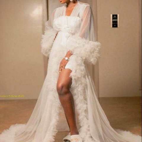 Produtos populares 2026 guarnição da pena Robe luxuoso nupcial com penas Robe vestes nupciais com penas